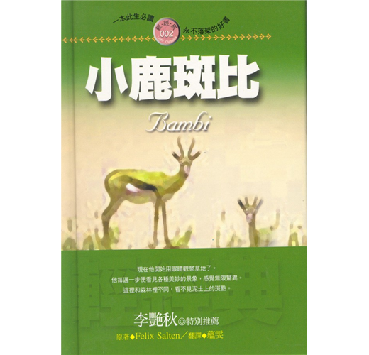 在許多人的心目中,『斑比』這個名字儼然已成為小鹿的代名詞,這本陪伴無數人走過童年的故事,此次在『輕經典系列叢書』中又再度重現,值得您好好珍藏。無論您是大朋友或小朋友,我們邀您一同成為小鹿斑比的新夥伴。