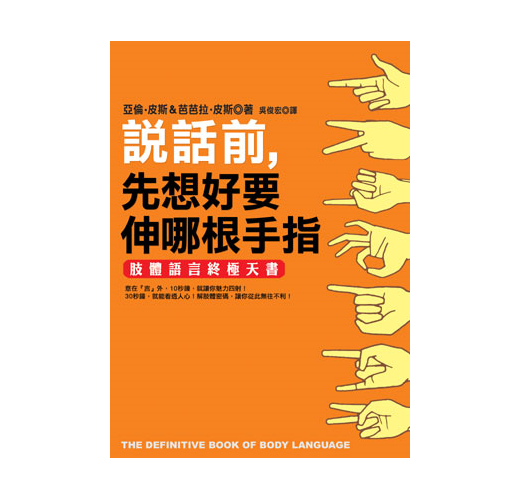 以《男人女人》系列創造兩性書話題風潮的皮斯夫婦,根據三十年的研究經驗,以及最尖端的演化生物學、心理學和腦部醫學知識,為你徹底解開眼神、手勢、聲音、表情和肢體動作背後所隱藏的訊息,幫助你看穿對方真正的態度與情感!看完本書,你就會知道: