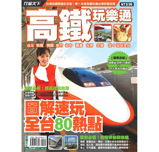 (2)『旅遊必看!搭高鐵玩台灣80熱點』──自由行從8大站出發最新最熱門去處、套裝行程玩北中南東旅行社最好康玩法等。此外,還有『通車必拍』紀念保存單元,趣味的留影紀念照10連拍,以及8大車迷珍藏品等。本書是台灣高鐵開通紀念版,更是全國第一本搭高鐵玩遍台灣詳盡指南。
