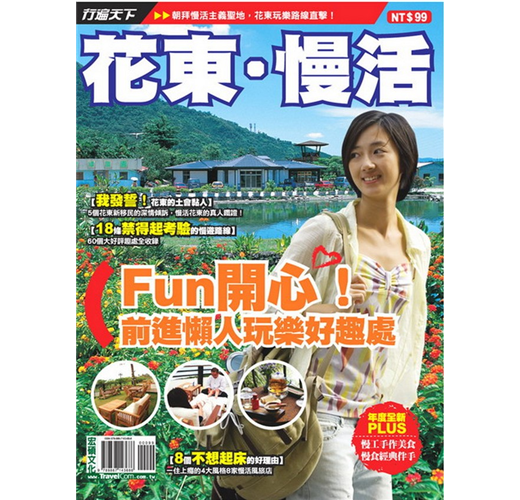 鎮日與時間賽跑的你,是否也罹患了「時間病」呢?用餐狼吞虎嚥,匆忙通勤打卡,我們幾乎不曾好好吃一頓飯,細細咀嚼口中的食物;為了解放壓力而去旅行,卻更匆忙的拉車、趕行程,累積更多疲憊。於是「慢活」(In Praise of Slow)運動展開了,慢活是一種態度,該快則快,該慢則慢,尋找自己最舒適、自在的步調,從容的生活。慢活旅行就是一種深入每個遊玩點的過程,我們不在乎一天能玩遍多少地方,只想踏在土地上,用感官與心,真切的感受旅行的每一刻。花蓮、台東,就是慢活旅行的聖地。2006年5月,美國《時代》雜誌的「亞洲最好」特刊,將東台灣海岸列為「亞洲最被低估的太平洋度假地」。雜誌說,東台灣海岸有崎嶇的峭壁和寧靜的海灘,還有一望無際的太平洋視野,足可與中國絲路並駕齊驅。文末還下了一段註腳:「東海岸有著綠色、乾淨與鹹鹹的海風,去呼吸一口新鮮的空氣吧!那兒還有一望無際的海洋。」這世界上沒有人能抗拒花東的絕美姿態。可是,蘇花公路很美,開車卻很累;搭火車很悠閒,時間卻頗漫長。如果以上是你不去花東的藉口,現在通通不是理由了!因為台鐵傾斜式列車「太魯閣號」上路後,兩個小時就能直奔花蓮;「汽車運載車」開始營運後,帶著全家人和愛車一起搭火車到花東,人車就地展開旅程,何須擔心租不到車?現在,讓我們快快到花東,懶懶玩慢活吧!