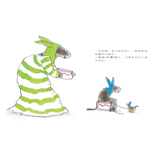 一打開這本書,讀者可以看到驢媽媽總是溫柔地微笑著叮嚀小驢子該怎麼穿衣服、要記得上廁所、該吃飯了等等生活上的事。而一直以為自己已經長大的小驢子也很有自信地認為那些穿衣、吃飯、上廁所的小事他都會了,根本就不用媽媽說。故事進行到這裡,相信每一位做父母的一定會覺得這個故事好親切,因為自己就像驢媽媽一樣。相對地,很多小孩子一定也會站在小驢子這邊,心裡想:「對呀,我就跟小驢子一樣,我都知道、我自己都會嘛!」
