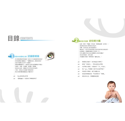 本書分為4個部分,包含認識眼睛、幼兒視力、眼睛疾病和保眼常識。除了解答人的一生從小到大到老年會碰到的眼睛問題,並提供愛眼族不再礙眼的35個妙方,讓你不只洞悉靈魂之窗,更輕鬆達到預防、保健及治療!