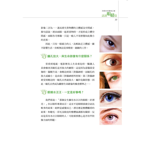 可是,你對眼睛的功能、結構知道多少?你曾經愛惜過它嗎?還是自小一直不斷的亂用、濫用,不知道正確的保養,而導致最後必須進行醫療。對於它的相關醫療及可能發生的毛病你又知道多少?還是你一向對於眼睛的認知與保健只是道聽途說,以訛傳訛,甚至誤信商品廣告。