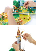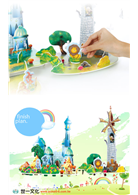 實景縮小、珍珠板打造的立體模型,可以玩綠野仙蹤的童話扮演遊戲。藉由拼組模型,能訓練手眼協調、思考邏輯,拼組完成後還有收藏價值,兼具趣味性與觀賞性。