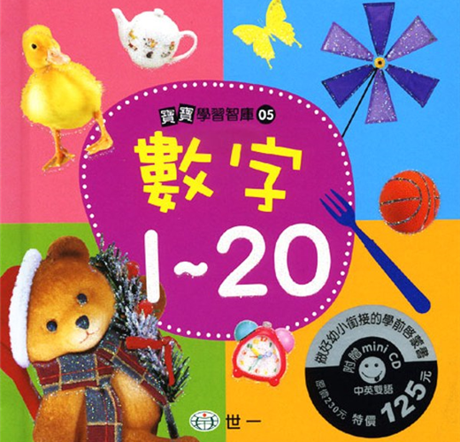 本書以鮮豔的照片引導幼兒學習數字1-20,透過圖像與數字的結合,以及隨書附贈的小CD,建立基本的數概念。