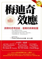 「異場域碰撞的交會點」是不同領域和文化的構想交流與激盪,最後引發傑出新發現的地方。Frans Johansson把新構想層出不窮現象,稱為「梅迪奇效應」(Medici effect)。本書說明告訴您如何在自己的生活中發現交會點,把我們找到的構想變成突破性的創新。