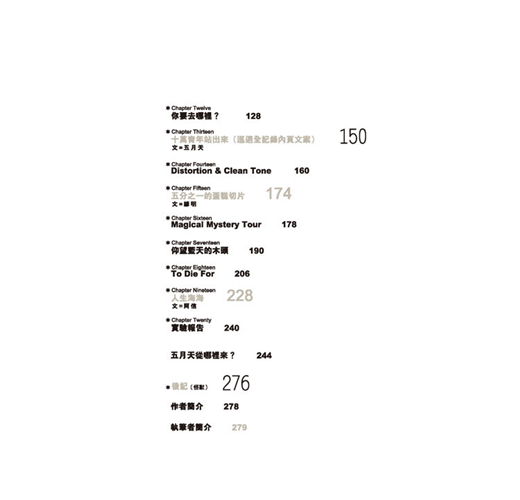 台灣 NO. 1 本土樂團「五月天」的第一本書!2001 年 9 月,主唱阿信、鼓手諺明入伍,吉他手石頭赴英遊學,五月天將暫時解散一年半。五個團員在製作《候鳥》、《海海人生》專輯的半年內,記錄下甘苦點滴、回憶起過往種種,彙集成這本真實而誠摰的五月天圖文集。精彩要目:五月天私密手記、五月天創作過程、啟蒙音樂、童年往事,以及珍貴圖片近千張。