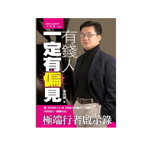本書特色 本書特色:這是一本充滿偏見的書,感性的人讀了之後,有可能此後再也看不起任何人,對任何事情都看不順眼,好像天下之大只有自己最偉大;理性的人讀了之後,有可能會很想顛覆作者的理論,反抗作者的說法,但無論你有什麼感受或領悟,都表示著作者的偏見已經啓發了你、衝擊了你,甚至已經改變了你的價值觀。這次作者跟大家定下新的遊戲規則,他沒有標示任何的粗體字或立一個框架顯示文內的重點摘要,作者是想將責任還諸於讀者,讓你們用自己的熒光筆發掘你自己的偏見,然後多加一句個人的偏見。斷章取義、以偏概全本書內容摘要,信不信,任憑君斷:你從不知道「認為」是會跟「知道」打架的,當你的「認為」戰勝了你的「知道」,你將會是輸家;反之,當你的「知道」打敗了你的「認為」,你就是贏家!「貧窮基因」會影響一個人的情緒,令人產生負面的生命態度,會壓抑人腦發奮向上的慾望,令人們的工作態度散漫,導致他們有『不可能擺脫貧窮』和『活下去沒有意義』的想法。錢越多的人,身體就越健康,有兩棟房子與兩輛車子的人會比只有一棟房子與一輛車子的人長命。尋找貴人的思考方向是:檢視你的身價,問一問自己到底是「投資家」還是「能力家」?有精神分裂癥的家族會比正常的家族,在事業上的成就高出很多倍。你可以用「種子數字」設定法,每年在收入後面多加一個零,你的年收入馬上倍增一百萬/一千萬/一億。