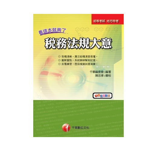 本科在初等考試中屬於背誦型科目,各稅之稅率、減免扣除額等無一不考,考生需多下苦心。由於租稅法律所涵蓋的範圍既廣且雜,唯有多看、多讀、多記,才能在面對考試時從容以對,輕鬆獲取高分。