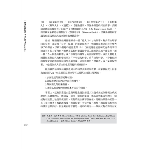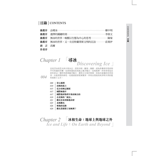 ◆「對於南北兩極、冰充滿活力和維持生命的特性,以及在面臨溫室氣體節節上升的存亡關頭所該採取的減緩策略等,這本書的內容說明精闢,容易閱讀。」
