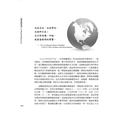 ◆「要寫出一本像《無冰的世界》富有教育意義、見解深刻且容易閱讀的書,需要在地球、氣候和冰地理學的範圍有四十年領先研究紀錄的經驗,以及像亨利‧波拉克擁有的語言天賦。」