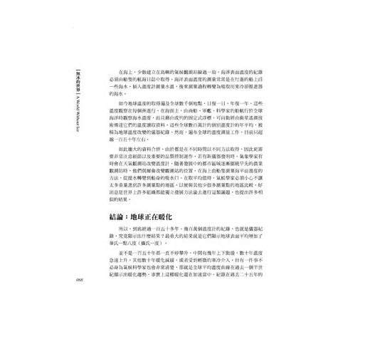 《無冰的世界》(A World Without Ice)一書作者波拉克博士(Dr. Henry Pollack)是一位資深地球科學家,長...