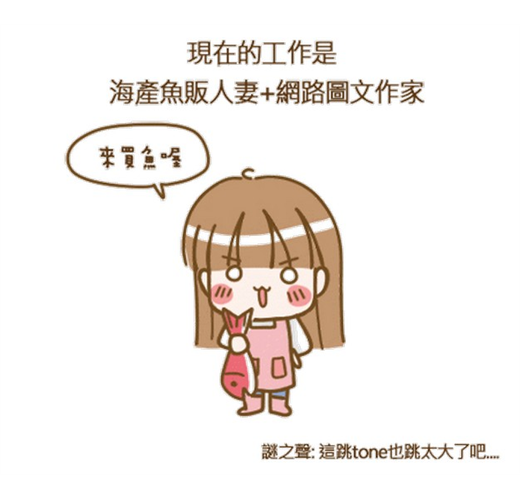 曾經為了維持畫圖的夢想而到處兼職打工,現為熱門的網路圖文作家及魚市場人妻。