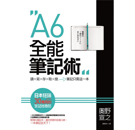 簡單容易的筆記活用新技巧,讓人人都可以做到,還能夠「搜尋」,讓你可以隨時檢索資料,讓筆記成為個人的強大資料庫。任何A6大小筆記本都可以,價格便宜,更不需要繁瑣的步驟就能達成。
