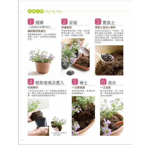 彩色精美圖片解說植物的栽種及養護步驟,