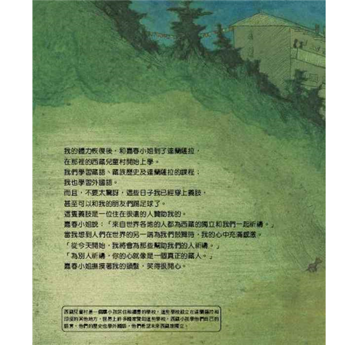 他們千辛萬苦爬過了高山,明瑪卻因腳受凍太嚴重,必須面對切斷腳的命運,可貴的是明瑪並不被此悲慘的命運打敗,他反而更勇敢樂觀去面對,甚至更認真學習外國語和各種課程。這個西藏男孩從此得以呼吸自由的空氣,接受藏人冀求的良好教育。