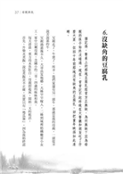 6.沒缺角的豆腐乳──猶記得,餐桌上的那塊豆腐乳經常方正無缺,為何無缺?因為母親的筷子始終沒碰過。現在,常常記不起昨晚在大餐廳和朋友吃了什麼大菜,但四十年前那塊沒有缺角的豆腐乳,卻把童年映得如此清晰。