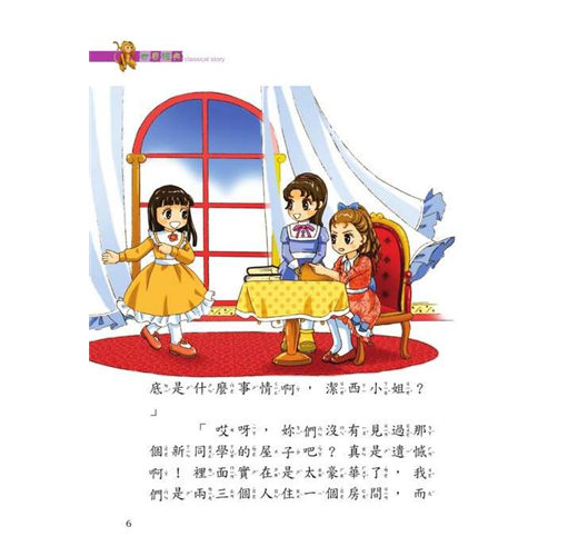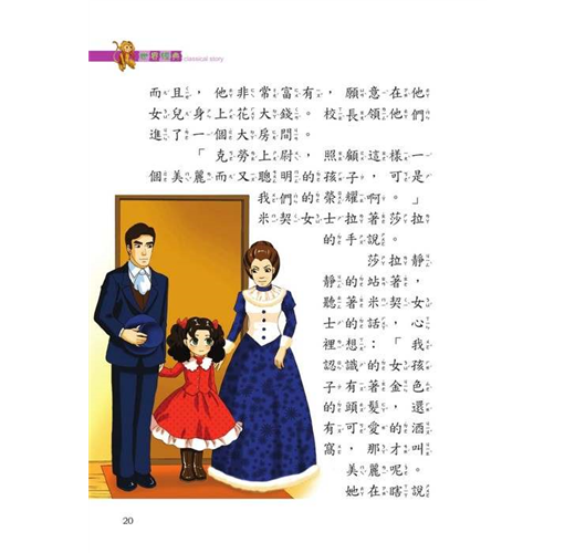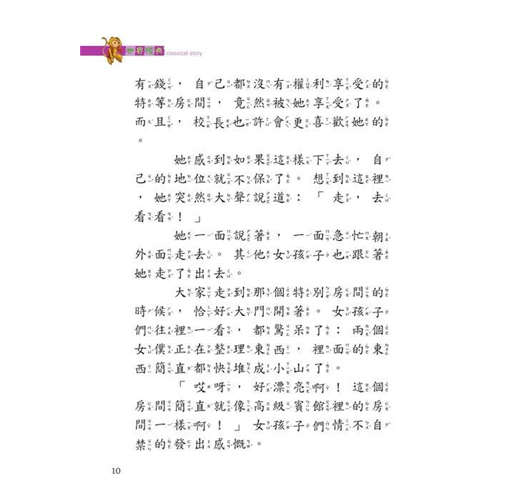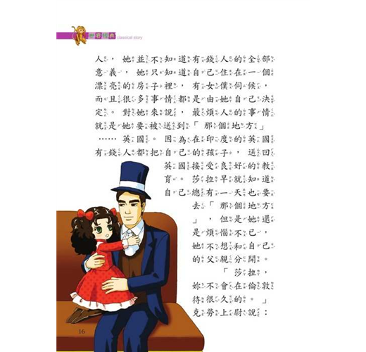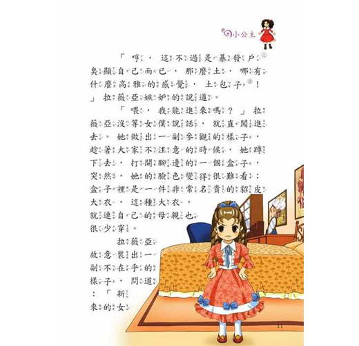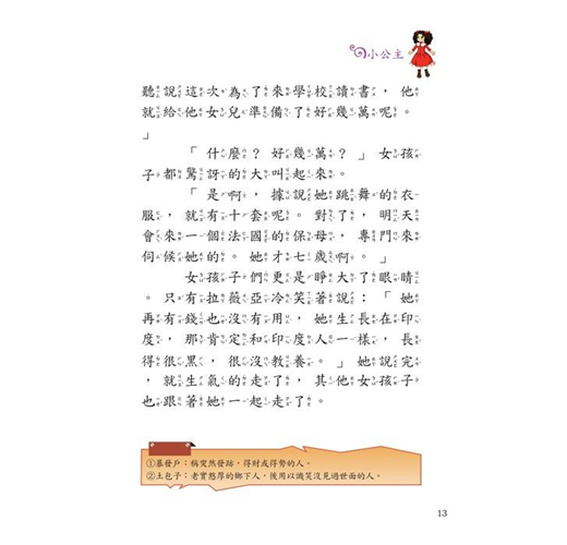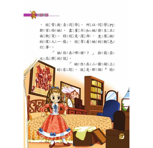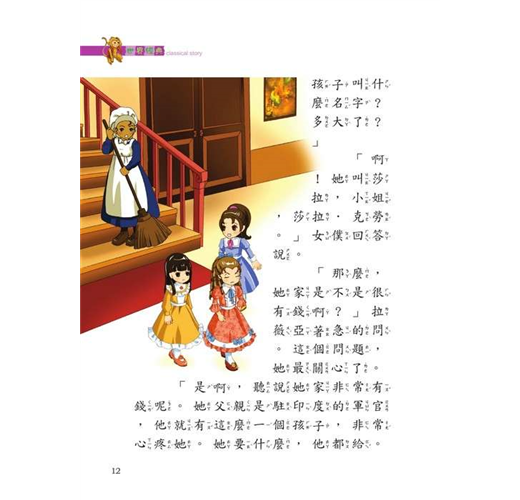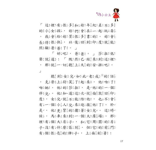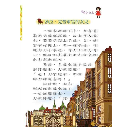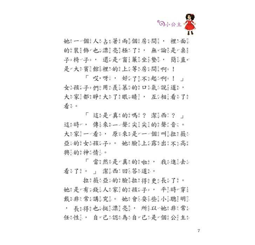 「無論貧窮還是富有,都要表現得像個公主。」很少有人能做得到,但是小女孩莎拉卻可以。她會用自信幫助笨女孩亞曼嘉朵、用溫柔幫助愛哭女孩羅蒂、用愛心幫助小女僕貝琪。原本幸福知足的生活,因為父親的去世,讓莎拉的生活發生了天翻地覆的變化……