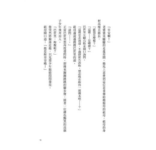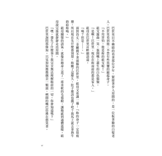 面對仍丈二金剛摸不著頭緒的巴世里,祖母又重講一遍:「妳的身子一定很疲憊,所以現在先什麼都別想。妳睡了這麼久,肚子應該也餓了吧?我馬上就去拿熱牛奶給妳喝。」