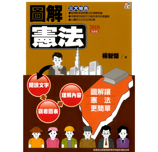 「憲法」本書作者擅長寫作通俗法律文章,其再度大膽嘗試,用一頁文、一頁圖的方式,輕鬆講解憲法重要概念。文章部分,作者打破法律人的文言文,用一般人可以接受的通順文字,說明最精華的憲法知識。圖表部分,作者將複雜的憲法概念與大法官解釋,化約為簡單的關係圖、樹枝圖、概念圖、流程圖,以及許多比較表格。