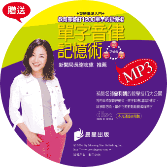 (3)聯想記憶:本書的故事、例句皆利用單字本身的意思而延伸出來的,以不需要再思考的方式來做直接串連;並非像一般單字記憶術的口訣,還需經轉換。