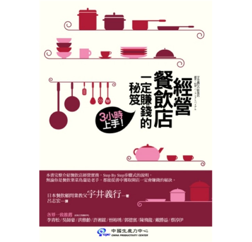 已授權本中心出版:《連鎖加盟餐飲店成功要訣》、《餐飲店創業開店成功秘笈》、《餐飲店必備的經管技術》,皆屬常銷書籍。