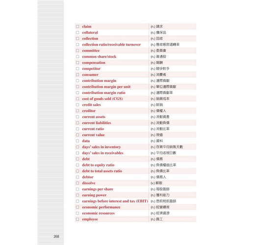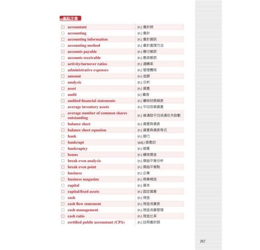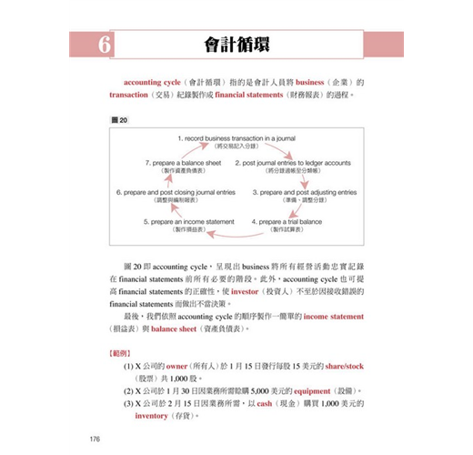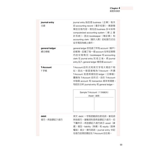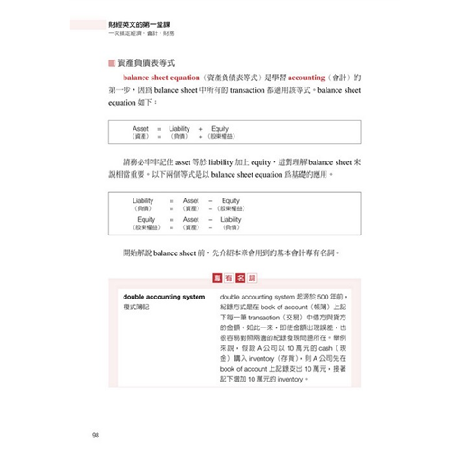 直接以英文表示財經、會計相關的專有名詞,關鍵字詞反覆出現,加深讀者印象,提高閱讀能力。