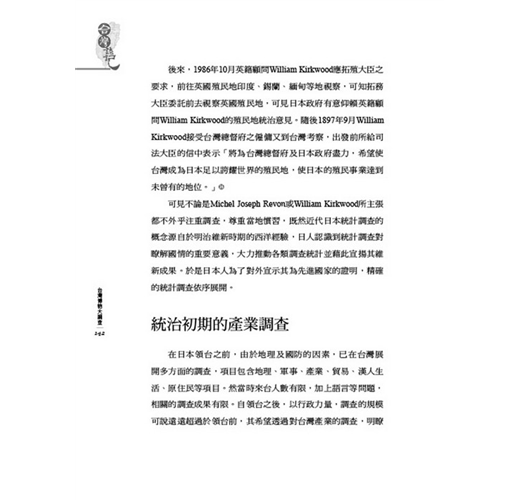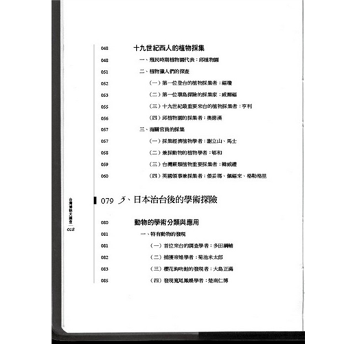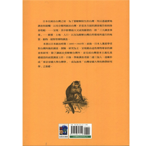 本書以日本統治時期(1895-1945年)前後,日本人獲悉方人對台灣所做的調查、探險、研究為主,呈現藉由這些博物專家的調查和研究,除了讓統治者瞭解台灣外,並完成台灣資本主義化基礎建設的前置調查工作。