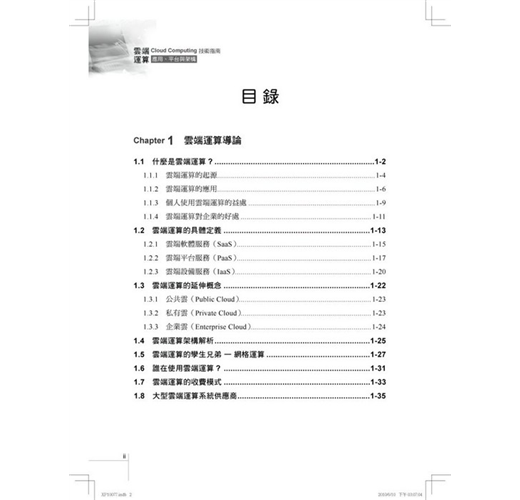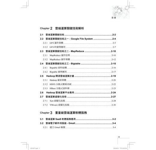 一、二章主講雲端運算的定義與概念,並介紹最重的雲端運算三大技術:GFS、MapReduce與Bigtable。