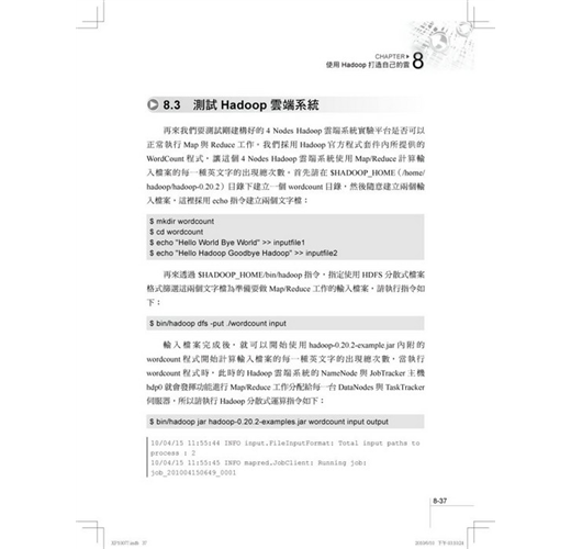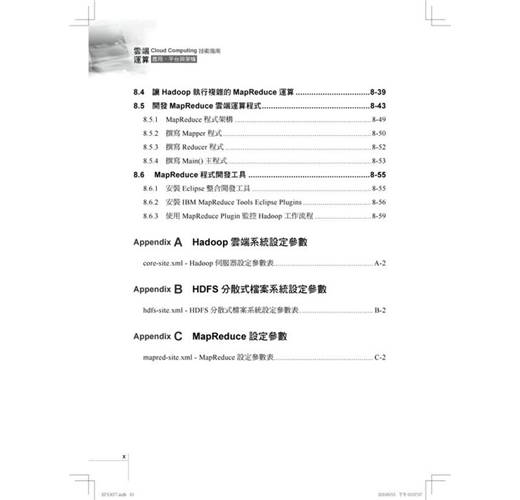 雲端軟體中最佼佼者就是開放原始碼的Hadoop,它是依據Google發表的MapReduce與GFS國際論文所實作的分散式雲端系統,當企業建構雲端基礎設施之後,就必須透過Hadoop來管理與分配任務給上千上萬台的伺服器,以形成雲端系統的運作。本章將教導你使用Hadoop實現部署雲端運算系統的方法,以及高達2000節點的大型資料中心部署技巧。