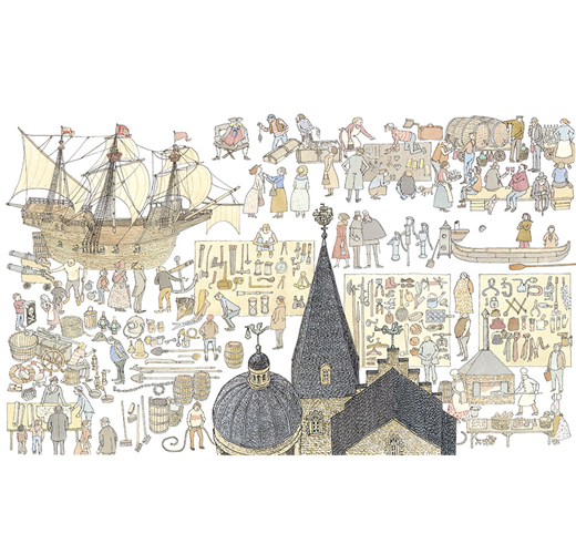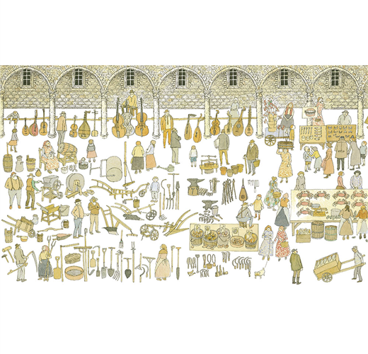 以無字圖畫書 呈現市場的熱鬧繁忙