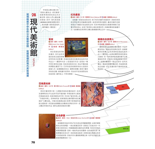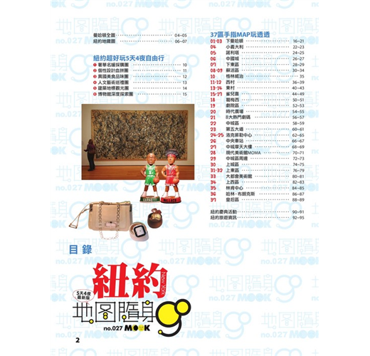 面對隨時都在變化更新的紐約,該怎麼樣規畫詳盡行程,才能夠不錯失重要景點又玩得盡興?MOOK依照6大不同的主題規畫了5天4夜自由行,讓每個遊客都能依照自身的喜好,迅速找出最適合自己的行程,再加上詳實的交通資訊提供,讓按圖索驥成為旅遊紐約最簡單的方式。