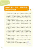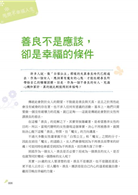 20歲的妳該做什麼,才能打造幸福人生? (大標)20歲的問號?成功女孩經驗法則,累積別人喜愛妳的金幣。20歲-30歲的分水嶺,下一站,女人!遇見20歲的妳,預見幸福存摺簿‧別讓小錢絆住妳的夢想 年輕,是世界上最奢華的東西,用再多金錢也買不到。如果青春的奢華能有金錢物質妝點,那麼就更加令人興奮了。但是,20歲的妳要明白,這不是一個重金錢的年紀。夢想、愛、專業、學習,這些對妳來說才是最重要的。‧要當公主不要當女僕 有太多女人一旦被男人追上手之後,就反過來追求男人,她們陷入戀愛的速度比男人還要深、還要快,想要緊緊抓住男人,也依賴男人,如果妳開始這麼做,那就無疑是讓自己從公主變成女僕──當他追求妳的時候,妳是一個高高在上的公主,可是等到妳們在一起之後,妳就主動放棄王位降格成為女僕。‧給自己最好的土壤年輕的妳一定要認識,世界上最美好的東西。即使妳還沒有能力擁有它們,卻不能不認識它們。認識這些美好的事物,才能提升妳的眼光和價值觀,才能督促妳不被廉價的劣質品所矇蔽。