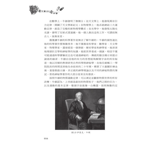 伽利略要用數學和幾何來表達自然規律,開創了現代科學。他去世的那年,正是科學史上第二位重要人物伊薩克.牛頓(Issac Newton,1642~1727)的誕生之年。