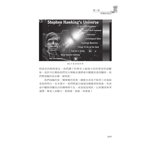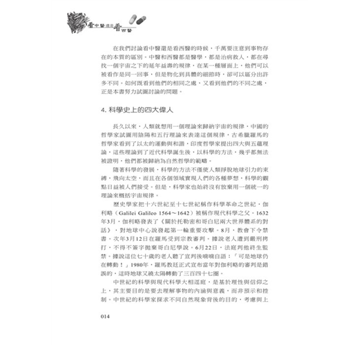 伽利略、牛頓、愛因斯坦和霍金,科學史上最偉大的四位大師,都想利用科學的方法,尋求可以解釋自然界規律的數學公式、定理或是定律,但是,很顯然,目前都沒有成功,可能還有相當長的路程要走。我們讀了科學史上最偉大的科學家的貢獻後,或許可以幫助我們充分理解在選擇看中醫還是看西醫時,我們將面臨的是怎樣一個背景。