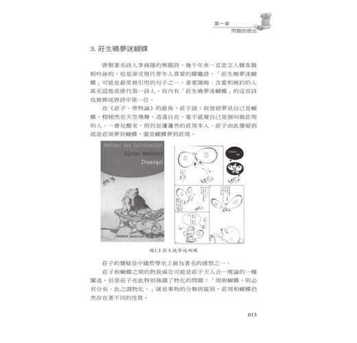 在《莊子.齊物論》的最後,莊子說:我曾經夢見自己是蝴蝶,栩栩然在天空飛舞,逍遙自在,毫不感覺自己是個叫做莊周的人。一會兒醒來,則仍是蘧蘧然的莊周本人。莊子由此懷疑到底是莊周夢到蝴蝶,還是蝴蝶夢到莊周。