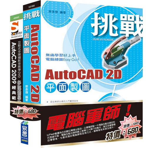 『電腦軍師:電腦軍師:挑戰 AutoCAD 2D 平面製圖 含 SOEZ2u多媒體學園--AutoCAD 2009 經典範例 』為全國首創以Flash動畫為主的數位學習出版品,以平面搭配一片電腦互動光碟的形式出版,使用者還可享有SOEZ2u網站數位內容使用權,透過平面、電腦互動光碟與線上教學三大媒介的整合,不但可以滿足各種習慣的學習者,生動活潑的電腦課程呈現方式,讓學習效率更加提升。
