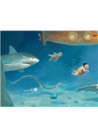 繪者桑妮亞用溫柔的線條和筆處,勾勒出瑪莉蓮圓圓的身材和圓圓的眼睛,也呼應著她溫柔又敏感的內心;現實與想像相互交錯的場景,提供讀者更寬闊的視野和想像空間;深藍色、淺藍色、藍綠色,層次豐富的色彩,彷彿可以看見光線透入水中,營造出一個神秘而深遂的水底世界……令人驚艷!
