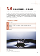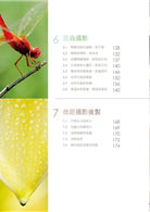 本章實用又充滿科學,一方面針對商業微距攝影作介紹,如何拍出玉器的溫潤、手錶的質感、背包的材質與細部、戒指的光澤、玩具機器人的動感;另一方面抓住了水的噴濺瞬間、火的生命力,並且對於超微距的設備與安裝進行介紹。