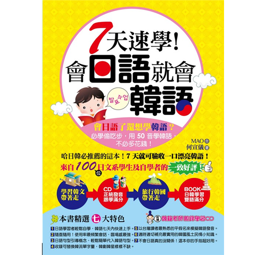 (1)日語學習者輕鬆自學,韓語七天內快速上手。