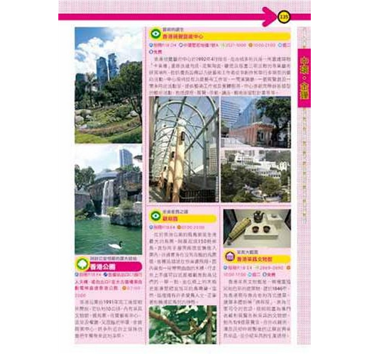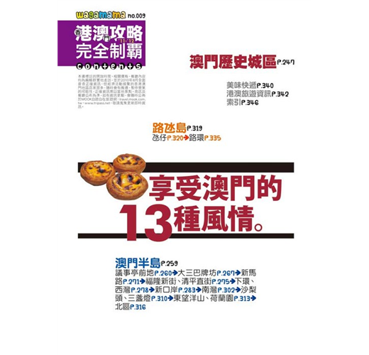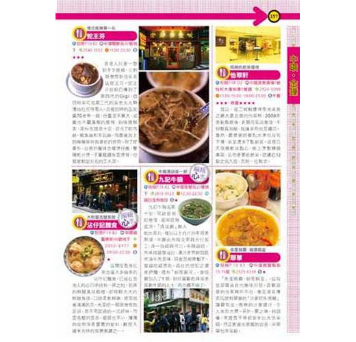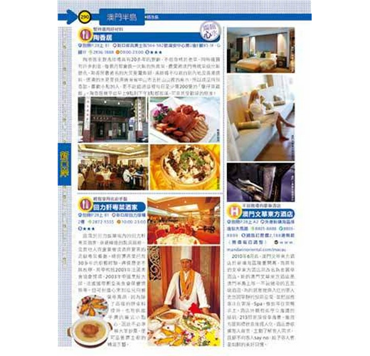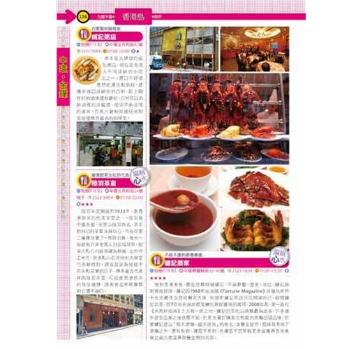 2.內容方面,重點店家會加上「編輯推薦」的標示,以使名店在眾多店家中能有所區隔。而重要的遊樂景點如昂坪360、香港杜莎夫人蠟像館、澳門科學館等,和大型購物商場如海港城、時代廣場、又一城等,也會以較大的篇幅呈現。