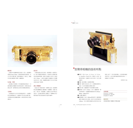 當然,頂級器材其實還不只書中選取的這些,國外有很多手工製作的小廠都生產高品質的攝影器材,但是因為近乎停產,或者在國內幾乎見不到,所以沒有寫進來。而這本書裡講述大片幅相機的內容也很少,因為我所知道使用大片幅的攝影師都有自己明確的攝影方向,並不需要讀這本書。