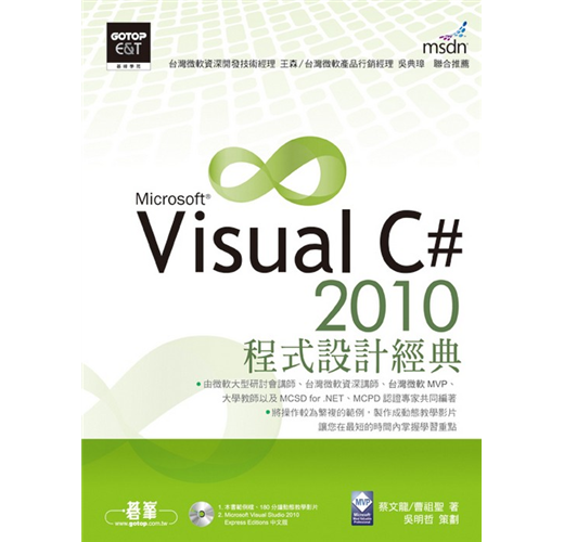由微軟大型研討會講師、台灣微軟資深講師、大學教師以及MCSD for .NET、MCPD認證專家共同編著,並由大學資深程式設計教師提供寶貴意見及審校,是一本適合大專院校教學,以及MTA、MCSD、MCPD認證課程的先修教材。