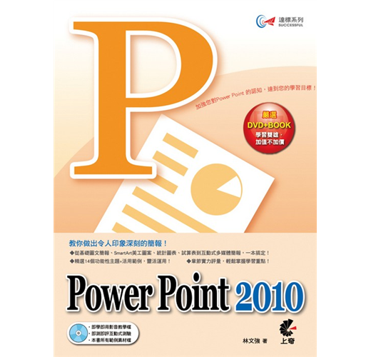 這本書是專門替想要快速入門PowerPoint 2010的使用者所設計,以多樣化的範例含括所有觀念與技巧,配合書中Step by Step的詳細解說,以及擬真式的影音實做教學,除了讓您快速度學會PowerPoint的各種使用方法和技巧,也能靈活使用PowerPoint各項功能,以提升自己的競爭能力!
