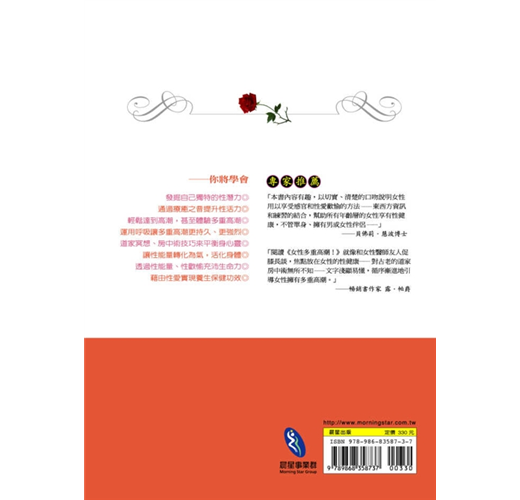 這本書將帶領女性讀者探索自我的性旅程,進而激發自己的性能量與性歡愉,一旦女人懂得如何運用本身內在的性能量,她的生活將會完全改變。女性讀者將從本書中學會──