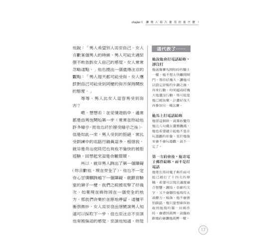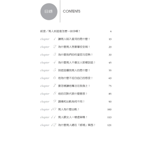 男人不留下來過夜的意義、他為什麼瘋狂忌妒、聊天的時候為什麼嘟噥、為什麼他買家電送妳當生日禮物……還有數十個難解的男性奧妙。