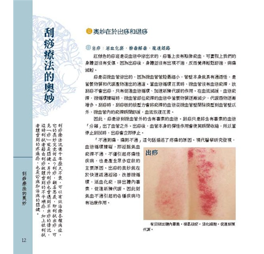 刮痧療法流傳千年歷久不衰,可以有效治療各種病症,它的奧妙究竟何在?刮痧,顧名思義,即刮拭出痧,可見「痧」就是關鍵。另外刮痧也會遇到不出痧的情況,這時刮拭者藉由刮痧板體會到的不平順感,加上被刮拭者體會到的疼痛感,也是診病和治病的關鍵。
