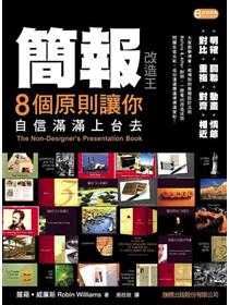 本書作者從她 20 年前開始在學校、研討會、企業組織、以及工作坊裡簡報的經驗,寫出這本能夠縮短你盲目追尋的時間,直接了當地告訴你這個禮拜就要上場的簡報到底需要什麼東西的小書,透過作者精心整理出來的 8 個原則,就可以讓你的簡報改頭換面,不但漂漂亮亮,更能讓聽眾頻頻贊同。