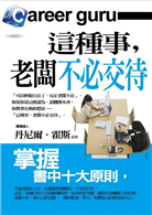 「可以輕鬆自在了,反正老闆不在」,如果你是這麼認為,請翻開本書,你將會有新的想法-「這種事,老闆不必交待」。掌握書中十大原則,不論老闆在不在,你都能悠遊職場,十分好自在。