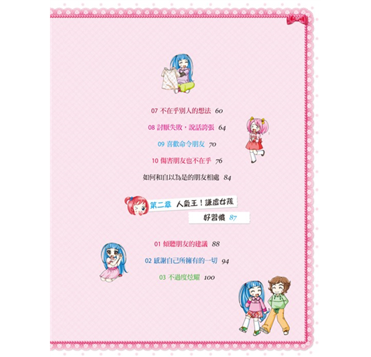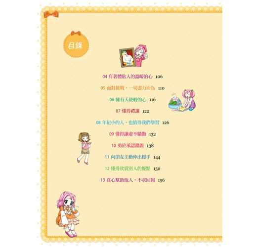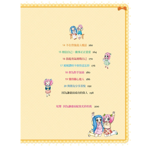 如果謙虛、放低身段的話,朋友們會瞧不起自己、不在乎自己嗎?不會的。越是謙遜,我的才能和智慧就更加增長,更能發揮出來。就好像稻穗越是成熟、飽滿,就會垂得越低;存錢筒越滿,投入錢幣時就越不會發出聲音一樣。希望大家也一起努力成為學會謙虛的美少女吧!